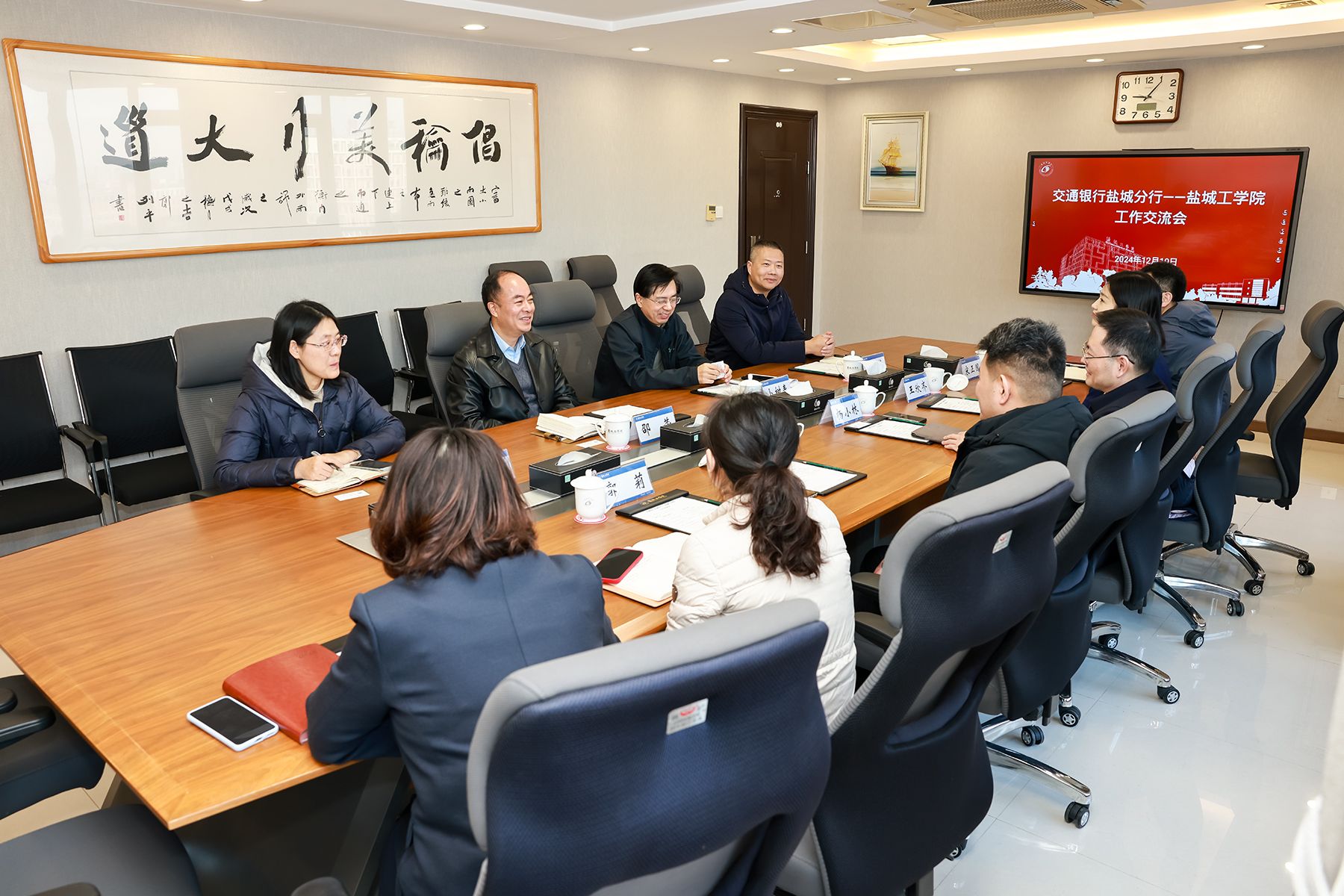 12月10日上午,交通银行盐城分行党委书记、行长杨小林,党委委员、副行长孙友平、王欣齐一行来校座谈交流,校长、党委副书记邵荣热情接待。