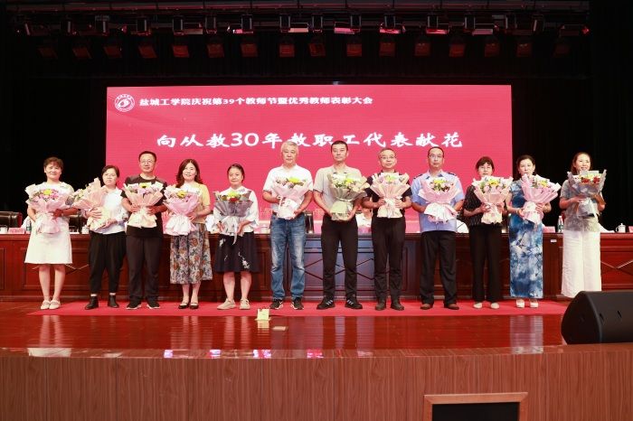 会前,参会人员观看了庆祝第39个教师节宣传片---“盐”途有我。全校科级以上干部,专业系主任、课程组主任、实验中心主任及科研业务机构内设单位主任,教师代表,全体辅导员,学生代表等参加表彰大会。